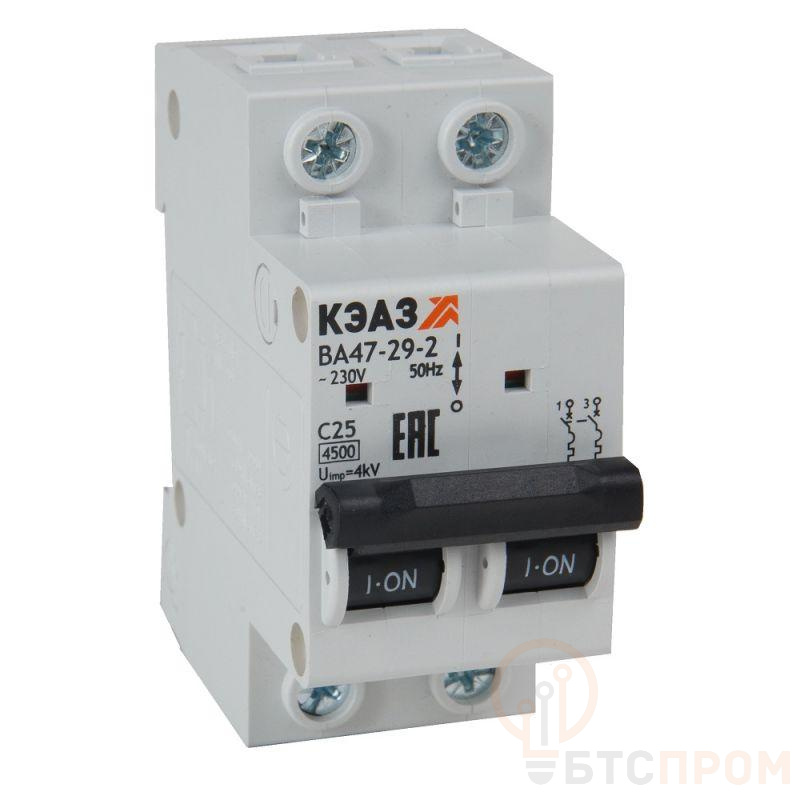Модульный автоматический 2 полюсный выключатель переменного тока с предельной коммутационной способностью при переменном токе 4.5 кА на номинальный ток 1 А .
