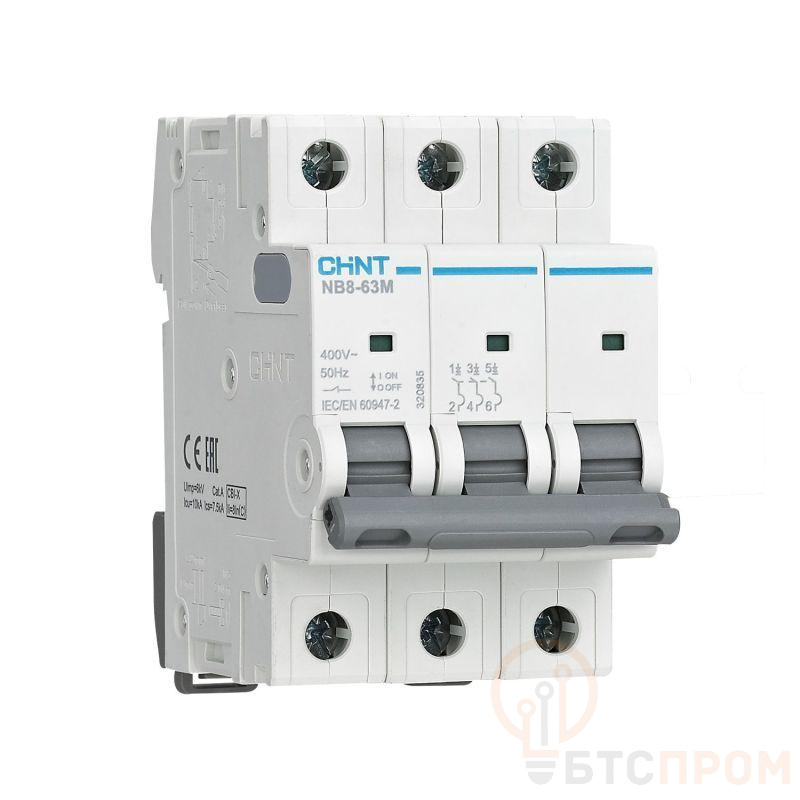 Модульные автоматические выключатели серии NB8-63M предназначены для применения в сетях переменного тока напряжением до 400 В частотой 50/60 Гц с номинальным током до 63 А для нечастых включений и отключений нагрузок, а также защиты от короткого замыкания в электроустановках жилых, общественных и промышленных зданий. Автоматические выключатели серии NB8-63M имеют исполнение без теплового расцепителя и рекомендованы для защиты и управления двигателями, а также установки в щитах кондиционирования и пожарной безопасности: дымоудаления, и вентиляции. Основные характеристики: Номинальный ток – от 1 А до 63 А Исполнение по числу полюсов – 1P, 2P, 3P, 4P Тип характеристики мгновенного срабатывания – L (6,4 – 9,6In) и K (9,6-14,4In) Отключающая способность – 10000 А Механическая износостойкость – 20000 циклов В/О Электрическая износостойкость – 10000 циклов В/О Категория применения – A Класс токоограничения – 3 Степень загрязнения – 2 Степень защиты – IP20 Ширина полюса – 18 мм Монтаж – на симметричную DIN-рейку 35 мм Подключение – кабелем, шины типа PIN и FORK Сигнализация – окошко индикации положения главных контактов Автоматические выключатели серии NB8-63M дополнительно могут оснащаться следующими устройствами: - вспомогательный контакт состояния XF9; - сигнальный контакт аварийного срабатывания XF9J; - независимый расцепитель S9 или расцепитель минимального/максимального напряжения (OUVT-X1; UVT-X1; OVT-X1).