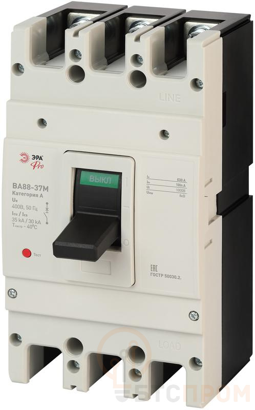 Автоматический выключатель ВА88-37М PRO SVA40-3-0630-E от бренда ЭРА — это современный трехполюсный аппарат на номинальный ток 630А, предназначенный для надежной защиты электрических цепей в промышленных распределительных сетях.