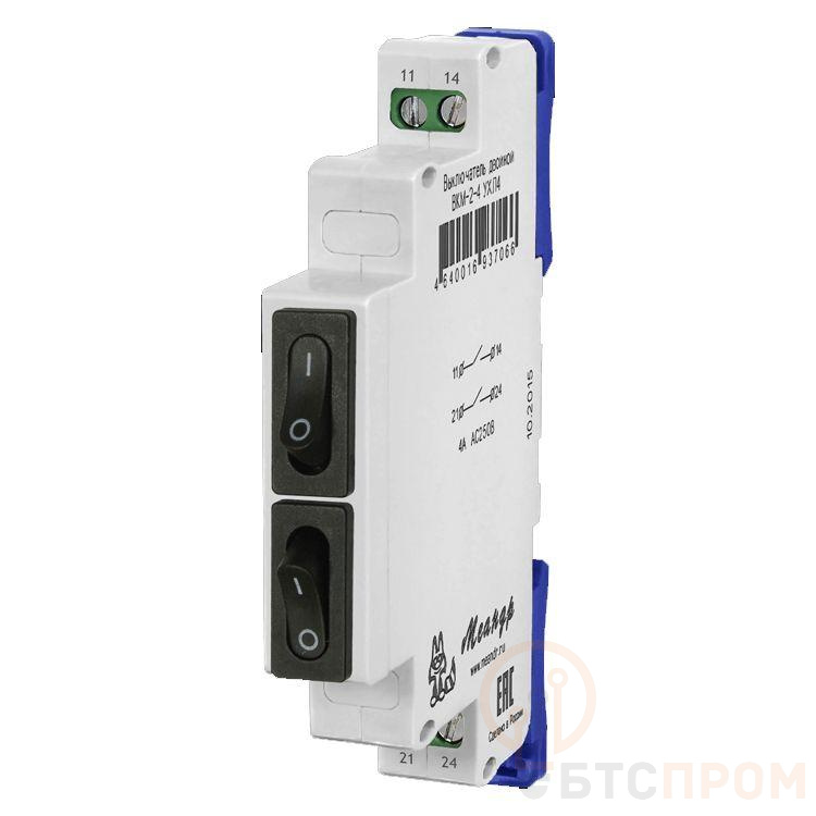 Модульный выключатель ВКМ-2 от компании «Меандр» — это надежное и компактное устройство, предназначенное для коммутации электрических цепей в стационарных электроустановках. Прибор рассчитан на номинальный ток 4А и напряжение до 250В переменного тока. Исполнение УХЛ4 гарантирует стабильную работу в условиях умеренного и холодного климата.
