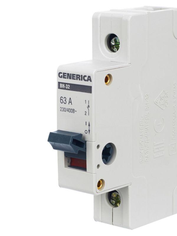 Выключатель нагрузки (мини-рубильник) 1п 63А ВН-32 GENERICA MNV15-1-063 фото в каталоге от BTSprom.by