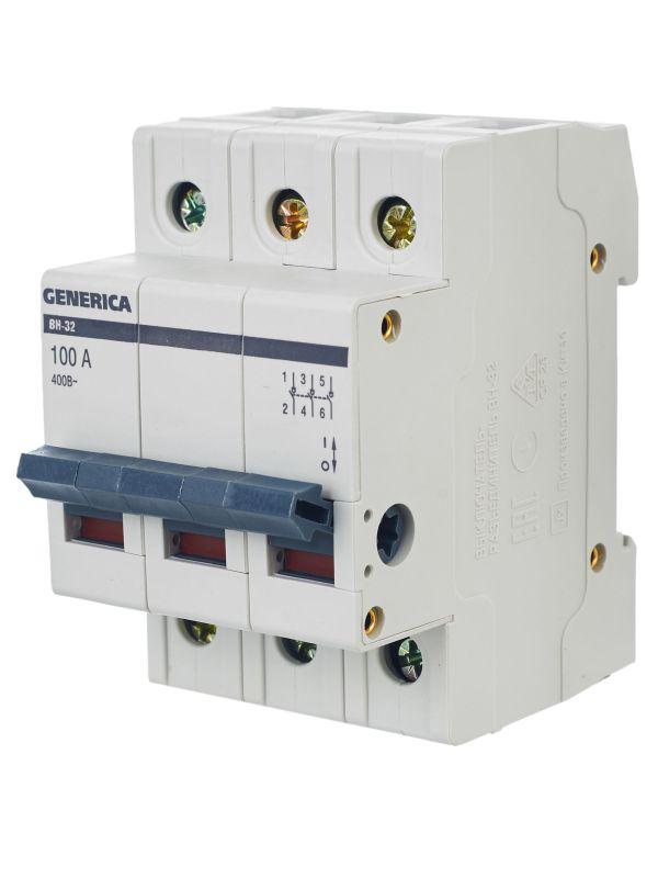 –Выключатель нагрузки (мини-рубильник) 3п 100А ВН-32 GENERICA MNV15-3-100