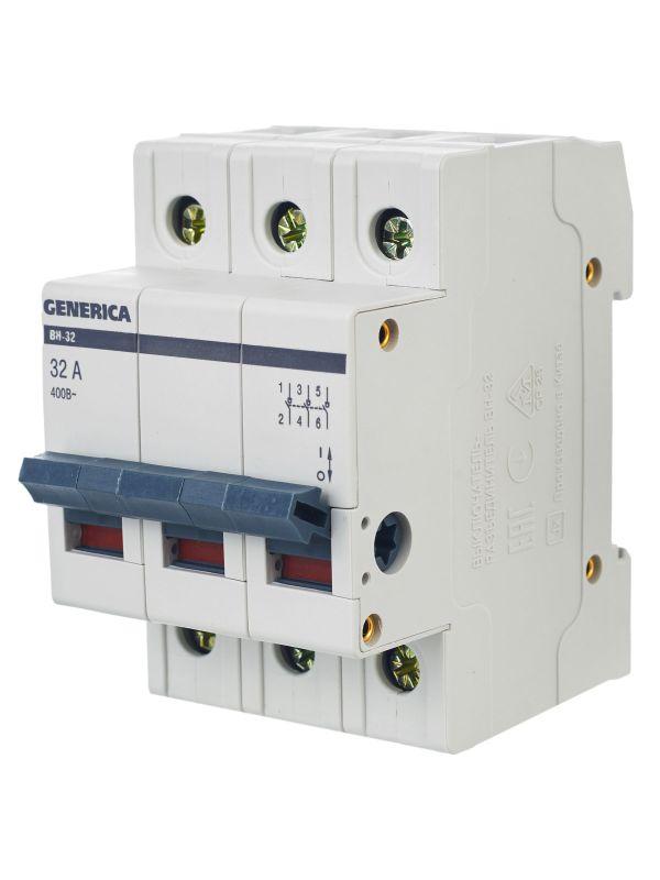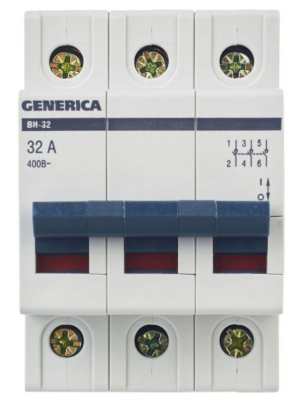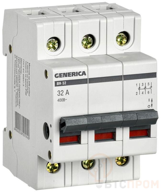 Выключатель нагрузки (мини-рубильник) 3п 32А ВН-32 GENERICA MNV15-3-032 фото в каталоге от BTSprom.by