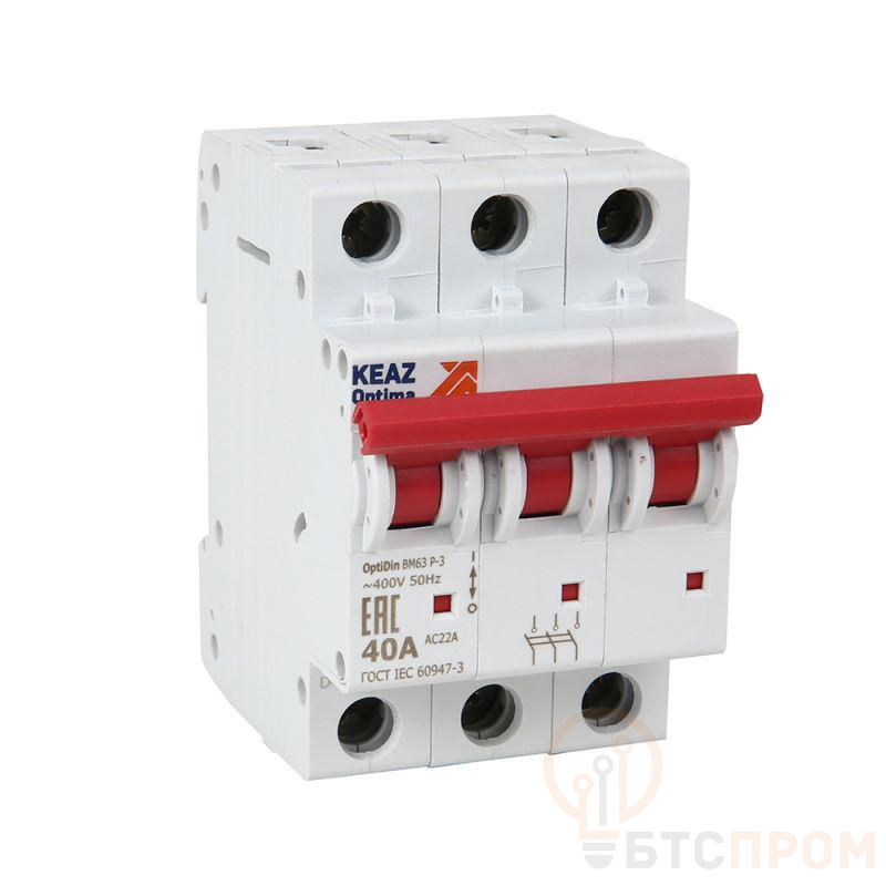 Выключатель нагрузки модульный 3п 32А OptiDin BM63P УХЛ3 КЭАЗ 332898 фото в каталоге от BTSprom.by