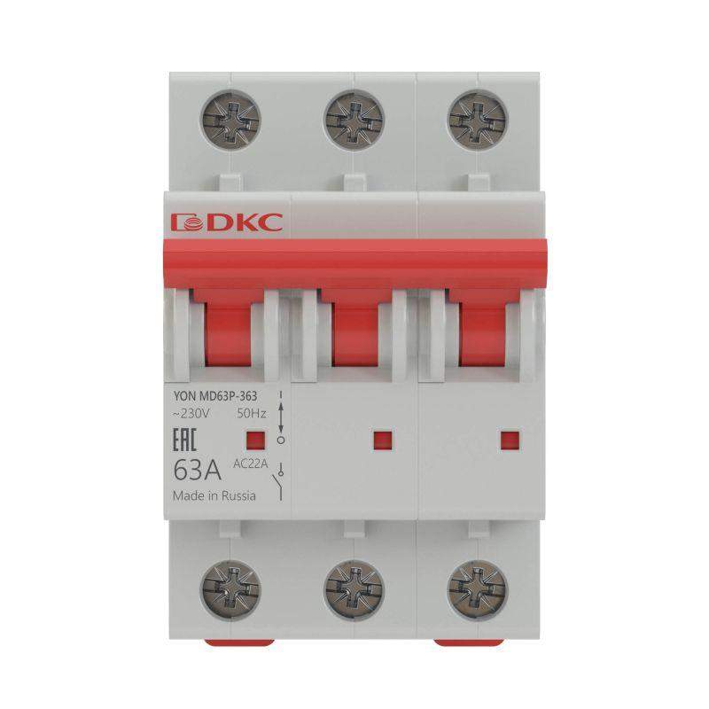 Модульный трехполюсный выключатель нагрузки YON MD63P номиналом 40 A предназначен для применения в электрических цепях напряжением до 400 В переменного тока частоты 50 Гц, проведения тока в нормальном режиме и оперативного включения и отключения указанных цепей.