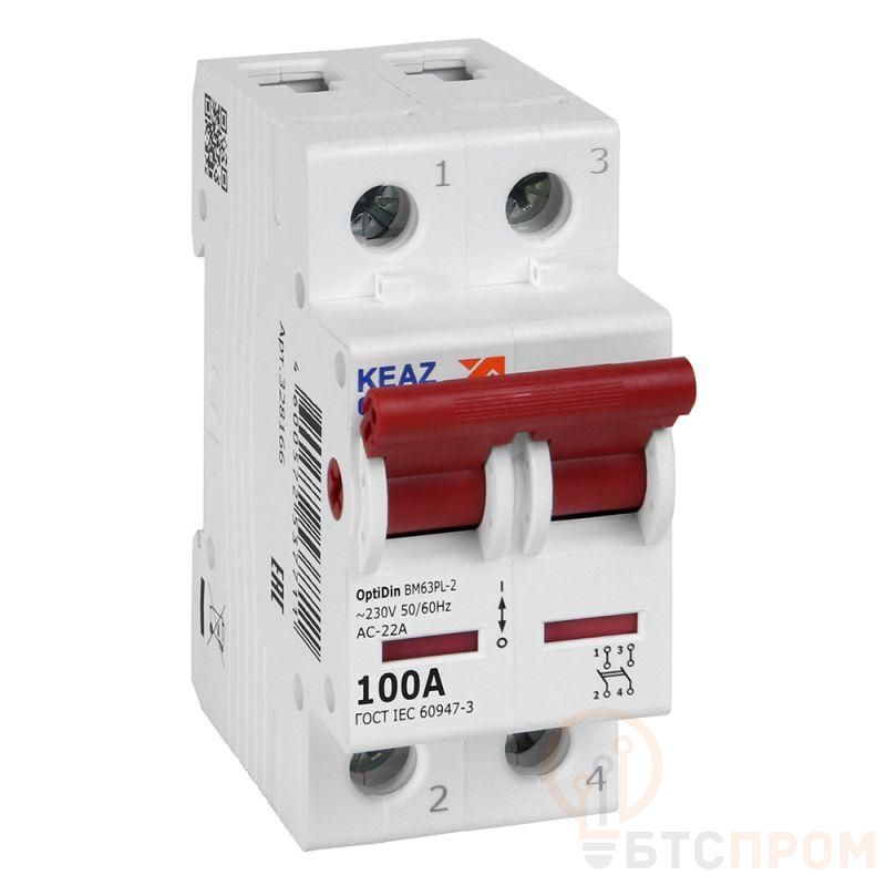 Модульный 2 полюсный выключатель нагрузки переменного тока на номинальный ток 100 А.