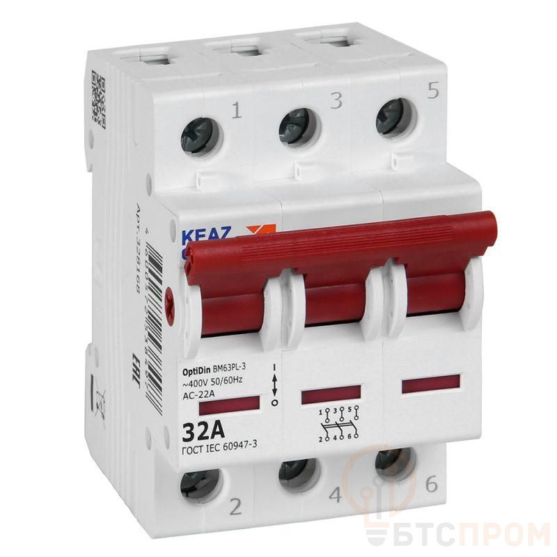 Модульный 3 полюсный выключатель нагрузки переменного тока на номинальный ток 32 А.