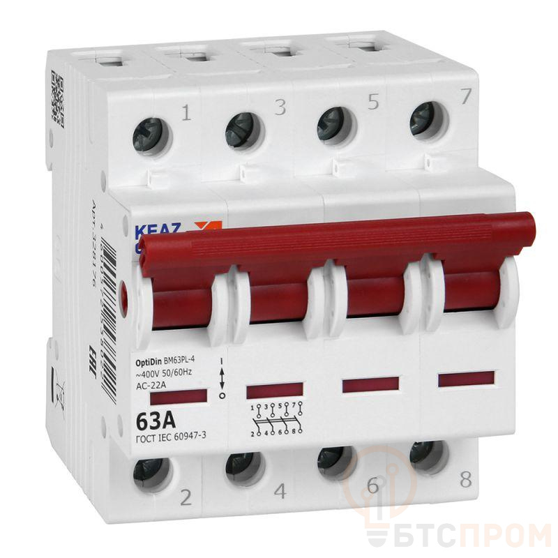 Модульный 4 полюсный выключатель нагрузки переменного тока на номинальный ток 63 А.