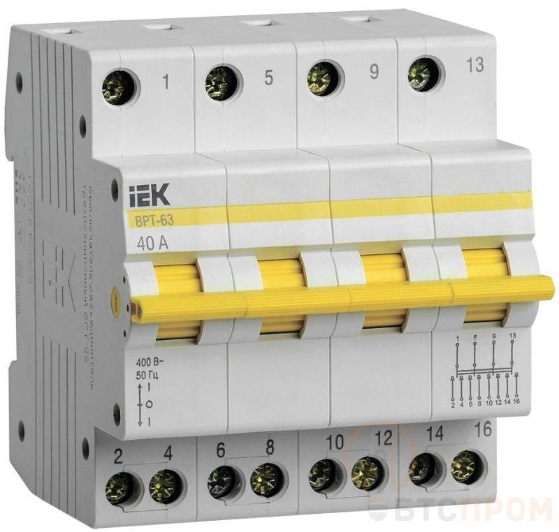 –Выключатель-разъединитель трехпозиционный 4п ВРТ-63 40А KARAT IEK MPR10-4-040