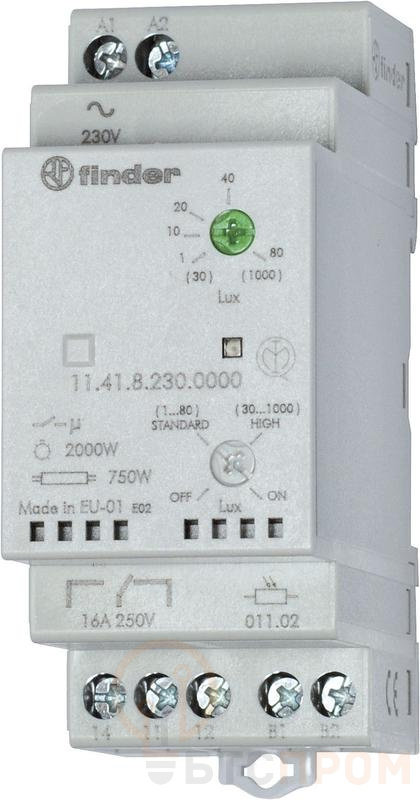 Фотореле модульное с фотоэлементом 011.03 монтаж на рейку 35мм 1CO 16А 230В AC настройка чувствит. 1…80люкс 30…1000люкс 35мм фотореле IP20 фотоэлемент IP54 FINDER 114182300000POA
