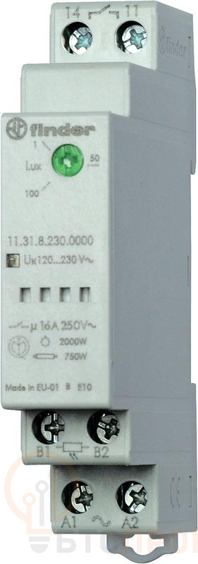 Фотореле модульное с фотоэлементом 011.03 монтаж на рейку 35мм 1NO 16А 230В AC настройка чувствит. 1…100люкс 17.5мм фотореле IP20 фотоэлемент IP54 FINDER 113182300000POS