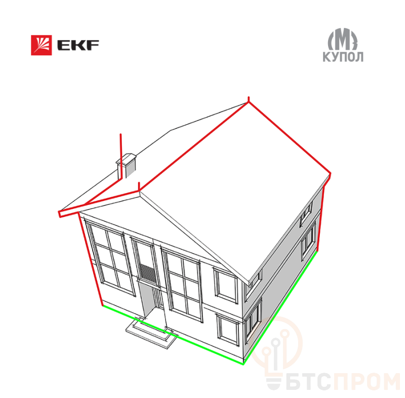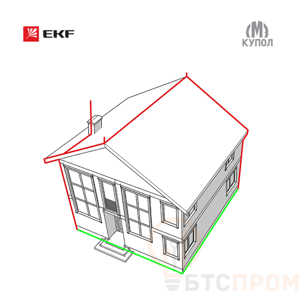 Готовый Комплект молниезащиты частного дома габ. 8х8м EKF PROxima (артикул lp-8x8) предназначен для монтажа системы молниезащиты частного дома габаритом до 8*8*8м. Молниеприемная сетка монтируется на кровле и соединяется с заземлением с помощью проложенных по фасаду токоотводов. Заземление отводит ток молнии от системы молниезащиты в грунт. Элементы молниезащиты и заземления изготовлены из стали с защитным покрытием – термодиффузионное цинкование, которое надежно защищает от коррозии в течение всего срока службы.