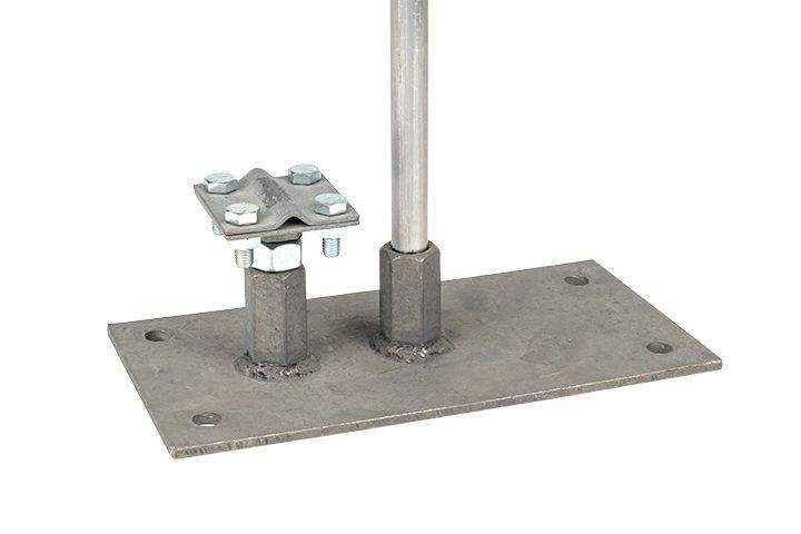 Предназначена для крепления молниеприёмников 1-4м на горизонтальную поверхность или плоскую кровлю. Имеют в составе две гайки М16: одна для молниеприёмника, вторая для зажима lp-g6606-e1302