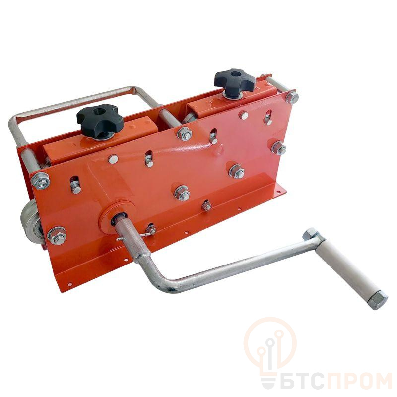 Приспособление используется для выпрямления проводников при раскатке бухт. Инструмент служит как для выравнивания прутка (8-10 мм), так и полосы (от 20х3 до 40х5 мм). Принцип действия – роликовый.