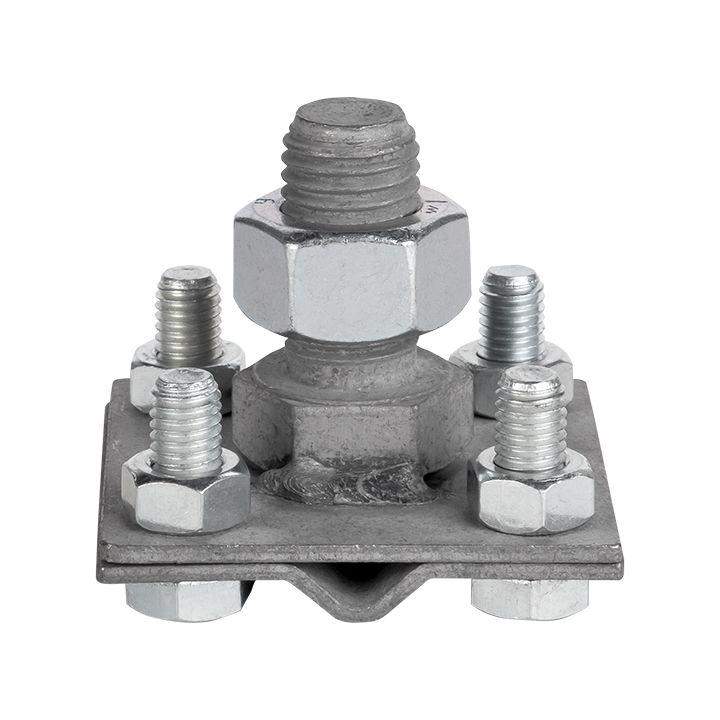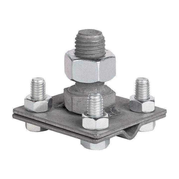 Зажим прута на штыре EKF PROxima предназначен для крепления токоотвода (прут 6–10 мм) к штырю заземления и молниеприёмнику или к кронштейну/бетонному основанию.