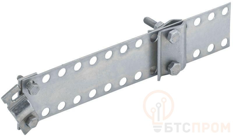 Держатель круглого проводника на трубах предназначен для продольного или поперечного монтажа круглого проводника на трубах различного диаметра и материала. Фиксация производится при помощи хомута. Проводник зажимается болтовым соединением. Материал корпуса - сталь горячеоцинкованная.