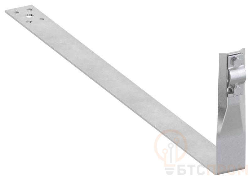 Держатель проводника круглого для черепичной кровли с болтовым зажимом предназначен для закрепления прутка на черепичной, мягкой и шиферной кровле. Держатель крепится к рейкам крыши при помощи метизов. Фиксация проводника происходит при помощи болтового соединения перпендикулярно длинной стороне держателя. Материал корпуса - сталь с гальваническим цинковым покрытием.