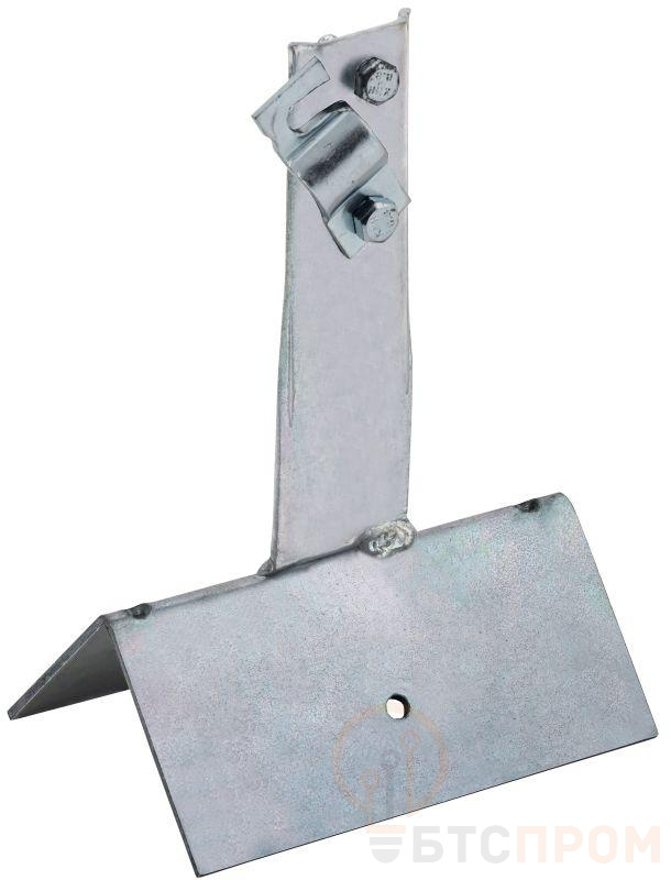 Держатель проводника круглого для конька с болтовым зажимом широкий предназначен для закрепления прутка на коньке скатной кровли. Держатель крепится к кровле при помощи метизов. Зажим проводника происходит при помощи болтового соединения. Материал корпуса - сталь горячеоцинкованная.
