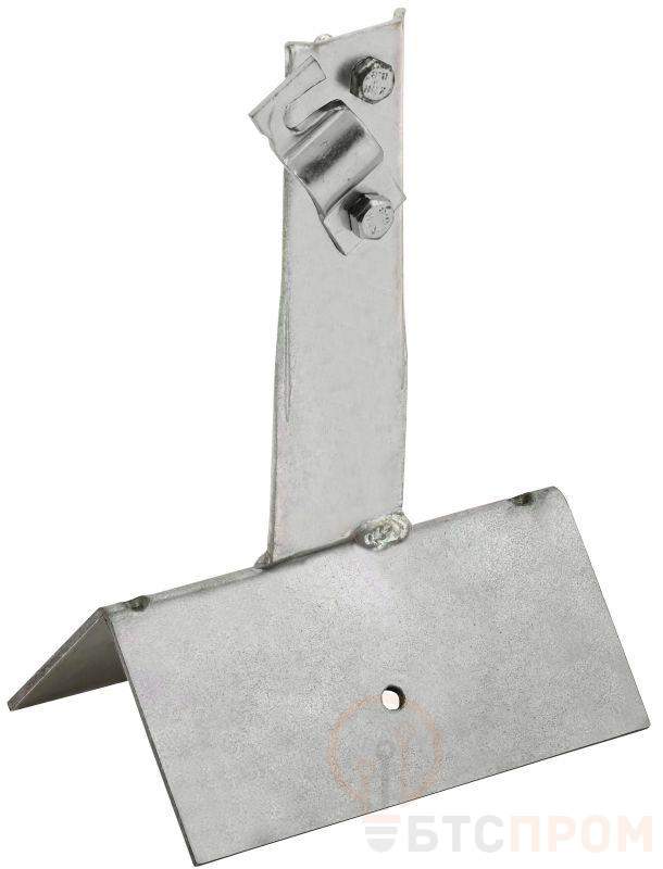 Держатель проводника круглого для конька с болтовым зажимом широкий предназначен для закрепления прутка на коньке скатной кровли. Держатель крепится к кровле при помощи метизов. Зажим проводника происходит при помощи болтового соединения. Материал корпуса - нержавеющая сталь.