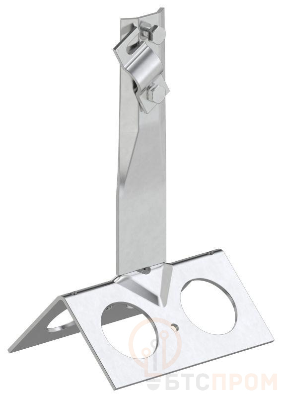 Держатель проводника круглого для конька с болтовым зажимом широкий предназначен для закрепления прутка на коньке скатной кровли. Держатель крепится к кровле при помощи метизов. Зажим проводника происходит при помощи болтового соединения. Материал корпуса - нержавеющая сталь.