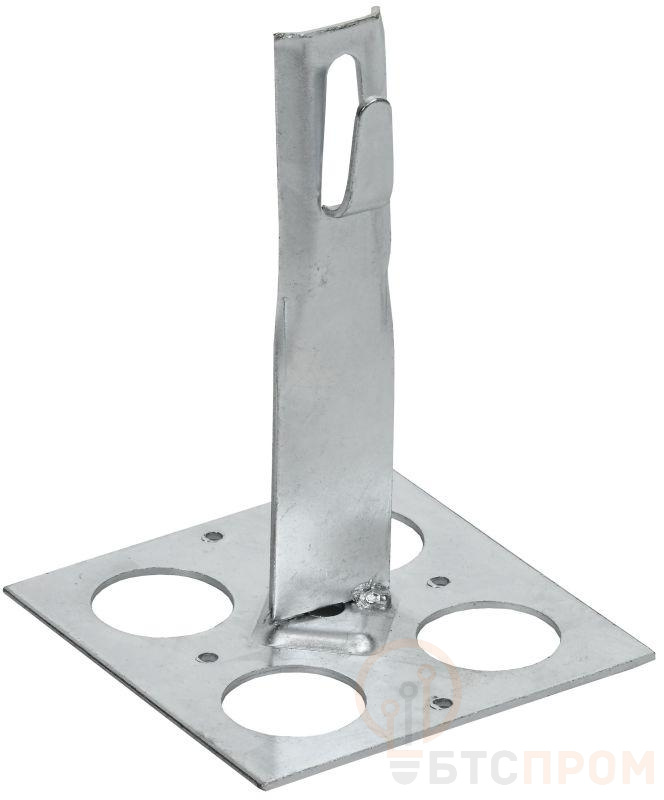 Держатель проводника круглого для плоской кровли с болтовым зажимом предназначен для закрепления прутка на плоской или наклонной кровле. Держатель крепится к кровле при помощи клея. Зажим проводника происходит путем загибания «язычка» держателя. Материал корпуса - сталь с гальваническим цинковым покрытием.
