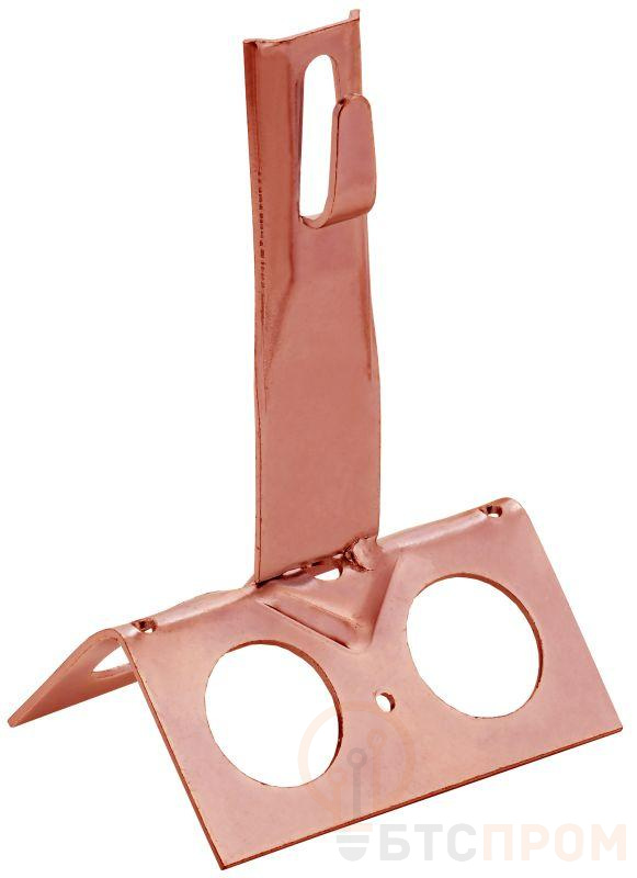 Держатель проводника круглого для конька с безболтовым зажимом широкий предназначен для закрепления прутка на коньке скатной кровли. Зажим проводника происходит путем загибания «язычка» держателя. На коньке крепится при помощи метизов. Материал корпуса - медь.