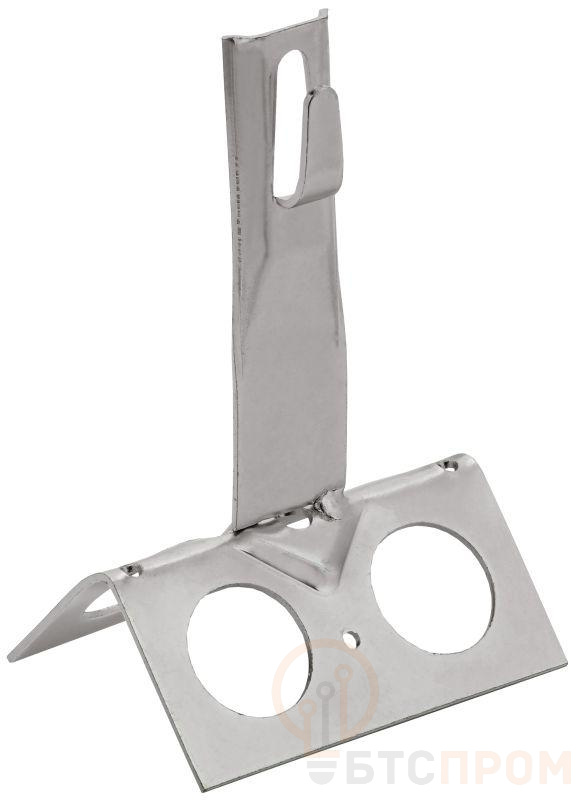 Держатель проводника круглого для конька с безболтовым зажимом широкий предназначен для закрепления прутка на коньке скатной кровли. Зажим проводника происходит путем загибания «язычка» держателя. На коньке крепится при помощи метизов. Материал корпуса - нержавеющая сталь.
