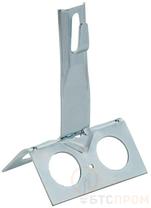 Держатель проводника круглого для конька с безболтовым зажимом широкий предназначен для закрепления прутка на коньке скатной кровли. Зажим проводника происходит путем загибания «язычка» держателя. На коньке крепится при помощи метизов. Материал корпуса - сталь с гальваническим цинковым покрытием.