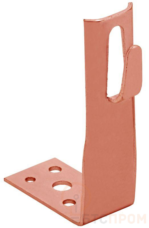 Держатель угловой с безболтовым зажимом предназначен для монтажа проводника на горизонтальные, вертикальные или наклонные поверхности. Монтируется на поверхности при помощи саморезов. Зажим проводника происходит путём загибания «язычка» держателя. Материал корпуса - медь.