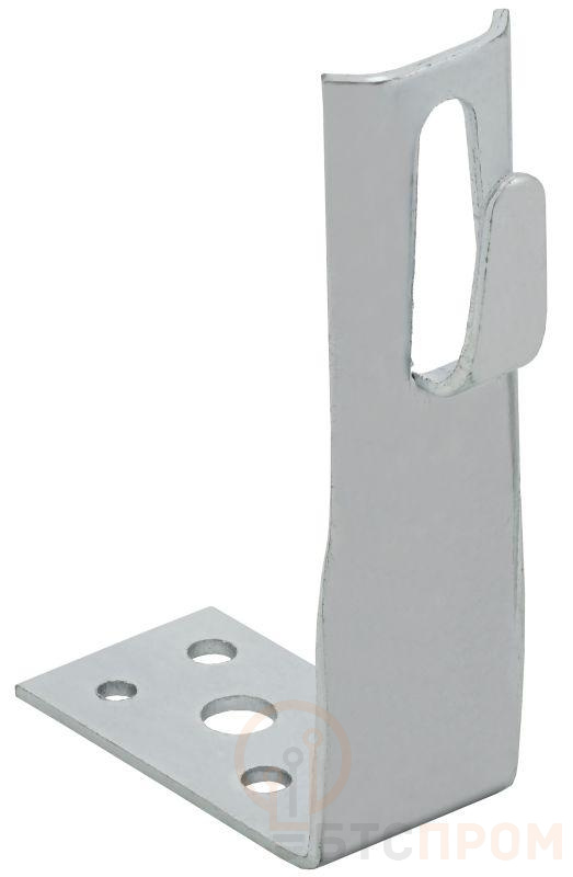 Держатель угловой с безболтовым зажимом предназначен для монтажа проводника на горизонтальные, вертикальные или наклонные поверхности. Монтируется на поверхности при помощи саморезов. Зажим проводника происходит путём загибания «язычка» держателя. Материал корпуса - сталь с гальваническим цинковым покрытием.