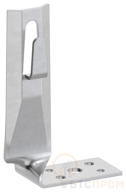 Держатель угловой скрученный с безболтовым зажимом предназначен для монтажа проводника на горизонтальные, вертикальные или наклонные поверхности. Скрученная конструкция держателя позволяет крепить проводник на узкие парапеты. Монтируется на поверхности при помощи саморезов. Зажим проводника происходит путём загибания «язычка» держателя. Материал корпуса - сталь с гальваническим цинковым покрытием.