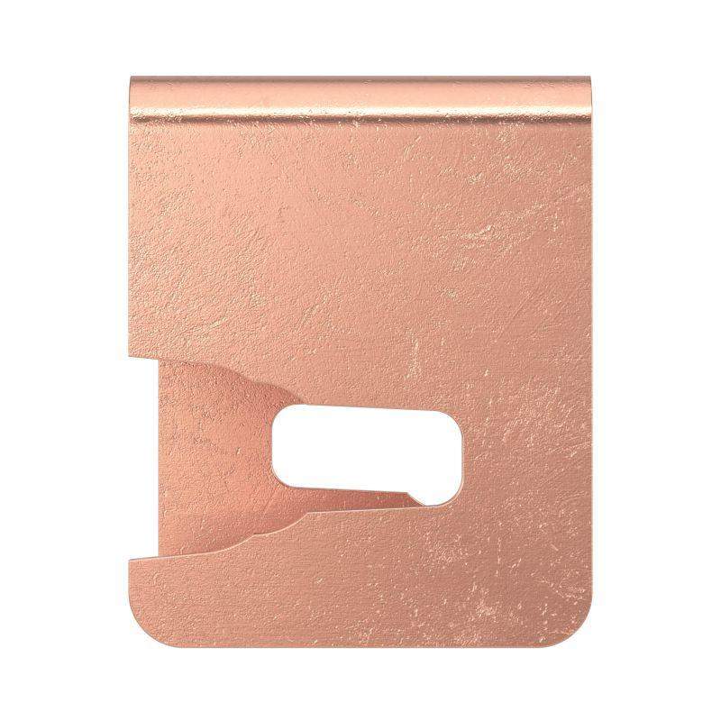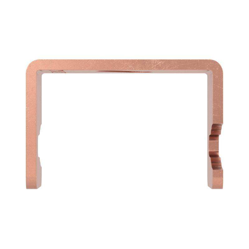 Скоба-держатель используется для крепления круглых (8-10 мм) и плоских (25 мм) проводников к фасаду здания и внутренним стенам. Максимальная толщина фиксируемой полосы - 6 мм. Материал - медь.