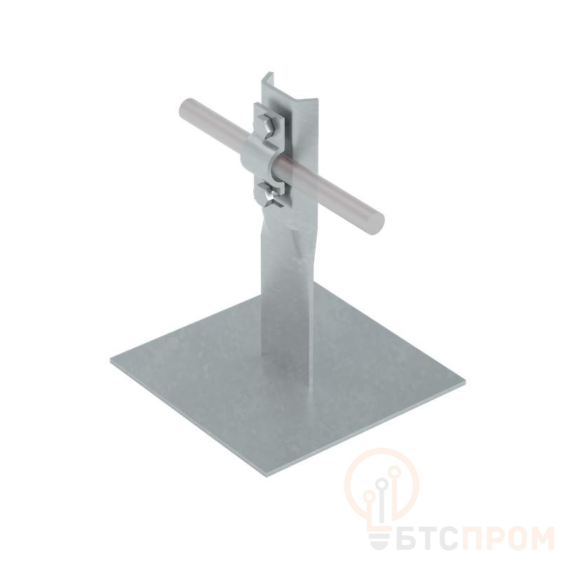 Компонент системы молниезащиты и заземления AURAFORT®, который используется для фиксации и соединения опорных конструкций проводников и элементов заземления на объектах различного типа назначения. Приклеиваемый держатель зажимной применяется для укладки прутка на плоских крышах. Для проводника D= 6-8 мм. Расстояние до проводника 90 мм.Изделие выполнено из стали и оцинковано термодиффузионным методом. Устанавливается путем приклеивания на битум или силиконовый клей. Фиксация проводника осуществляется при помощи болтовым зажимом.