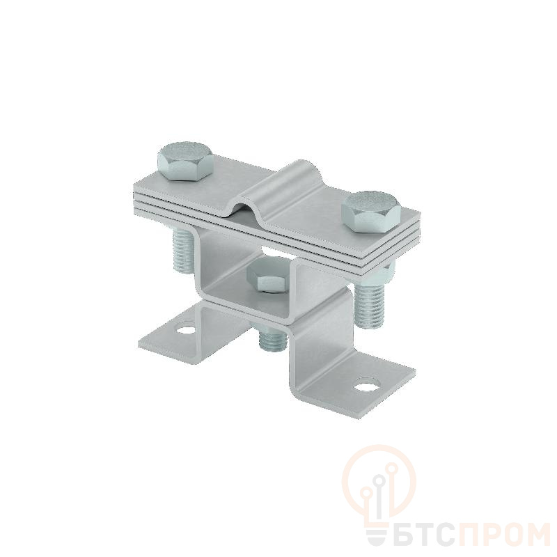 Компонент системы молниезащиты и заземления AURAFORT, который используется для фиксации и соединения опорных конструкций проводников и элементов заземления на объектах различного типа назначения. Двойной универсальный держатель на мостовой опоре для полосы и прутка применяется для укладки полосы и прутка на крыше здания. Фиксация проводников осуществляется за счет затягивания прижимной и профилированной пластины болтами. Изделие выполнено из стали оцинкованной электрохимическим способом. Предназначено для применения в местах предпочтительно с сухим климатом, внутри помещений и в слабоагрессивных средах, в соответствии с ГОСТ 15150-69.