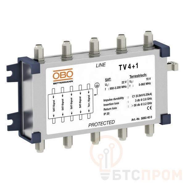 Устройство защиты от импульсных перенапр. УЗИП для телекоммуникационных сетей (Тип разъема F) TV 4+1 OBO 5083400