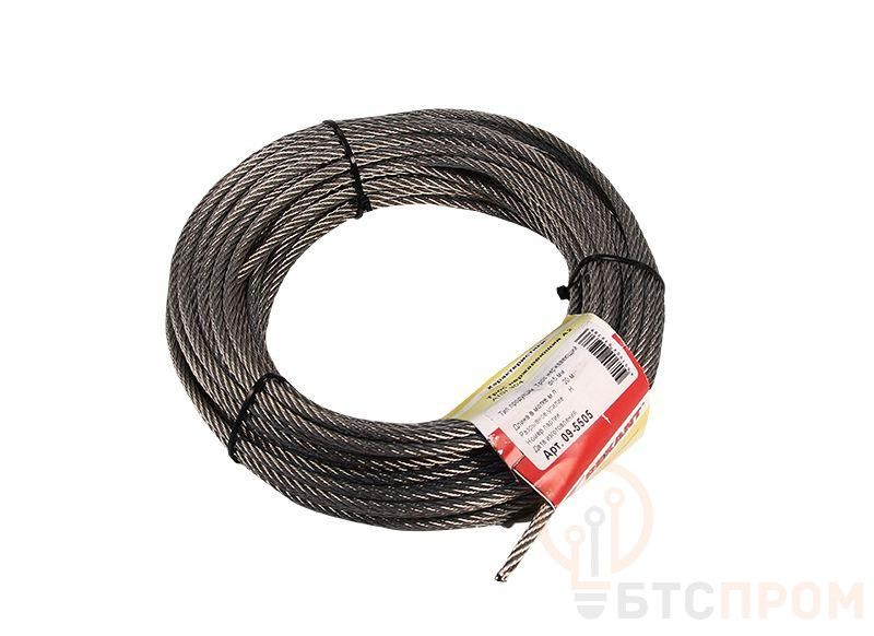 Нержавеющий трос плетением 7х7 применяется при погружении насосов или датчиков в скважины и колодцы. Используется в грузоподъемных машинах и механизмах, а также служит в качестве несущего элемента строительных конструкции. Трос изготовлен из высококачественной нержавеющей проволоки, что обеспечивает устойчивость к коррозии и внешним воздействиям окружающей среды, а также позволяет использовать его в агрессивных средах. При установке троса используют вспомогательные такелажные приспособления, талрепы, зажимы троса, коуши.