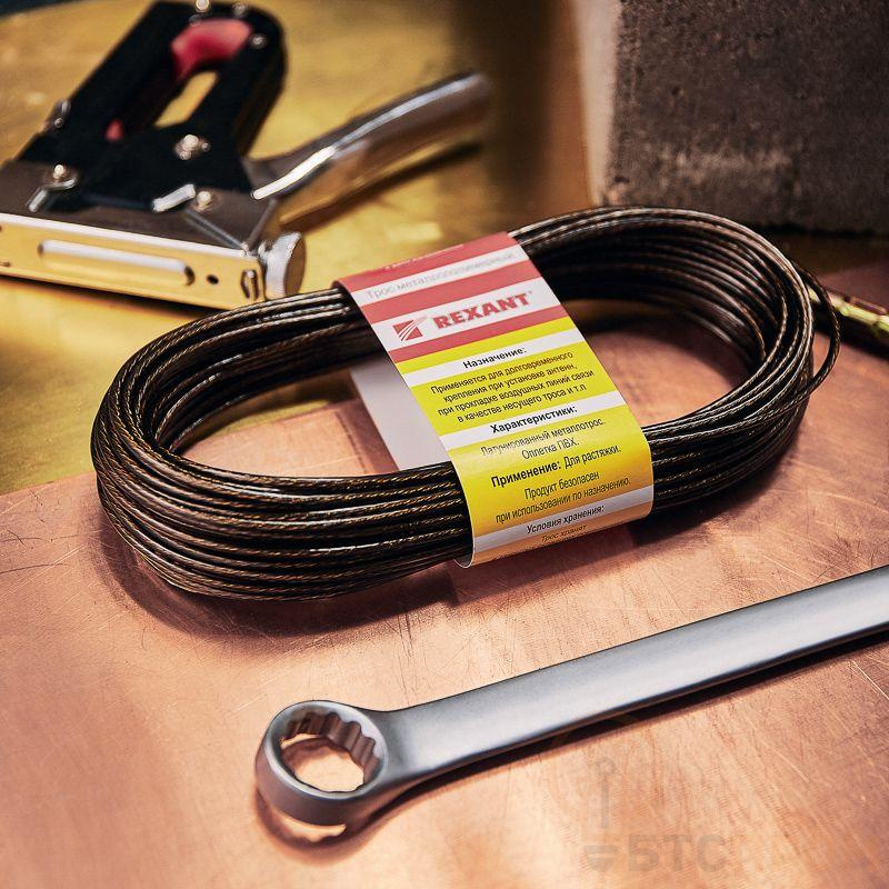 Трос стальной в ПВХ изоляции d2.5мм 20м черн. Rexant 09-5125-3 фото в каталоге от BTSprom.by