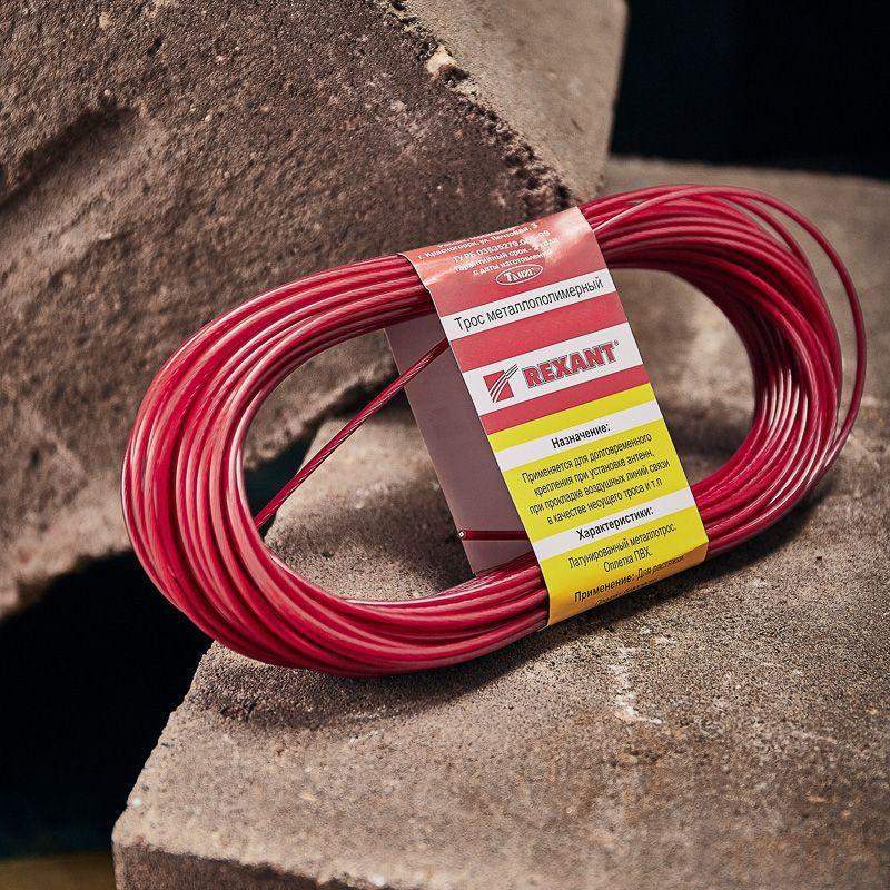 Стальной трос с полимерным покрытием используется для монтажа рекламных растяжек, систем освещения, новогодних конструкций и украшений. Применяется при организации ограждений, а также при оборудовании парников и теплиц. Предназначен для использования при статических нагрузках. Стальной трос свивается из высокоуглеродистой латунированной стальной проволоки и покрывается ПВХ, что обеспечивает устойчивость к воздействию влаги и пресной воды. ПВХ покрытие является экологически чистым и абсолютно безопасным материалом для человека и животных. Срок службы троса составляет более 25 лет (при отсутствии механических повреждений покрытия). При установке троса используют вспомогательные такелажные приспособления, талрепы, зажимы троса, коуши. Диаметр с покрытием: 2,5±0,1 мм. Диаметр без покрытия: 0,97-1,60 мм. Мин. разрывное усилие: 1 300 Н/130 кг.