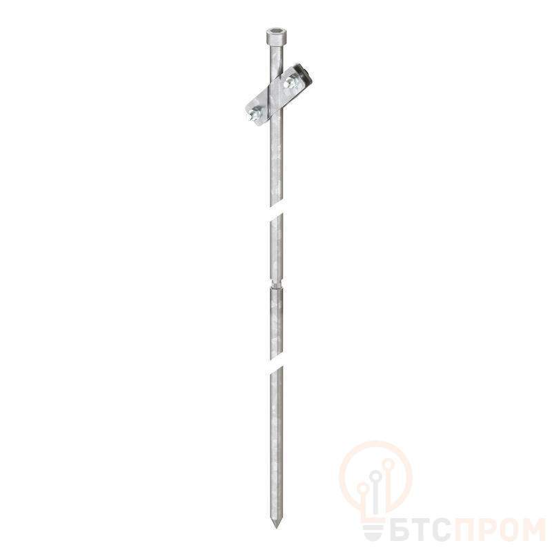 Назначение безмуфтового вертикального заземлителя – организация заземления токоотводов молниезащиты или электрического оборудования. Общая длина - 6000 мм. Комплект включает: вертикальный заземлитель, 1500 мм, верхняя секция – 3 шт; вертикальный заземлитель, 1500 мм, нижняя секция – 1 шт; соединитель проводника – 1 шт.; забивной винт – 1 шт.. Диаметр стержней – 20 мм. Материал – горячеоцинкованная сталь.