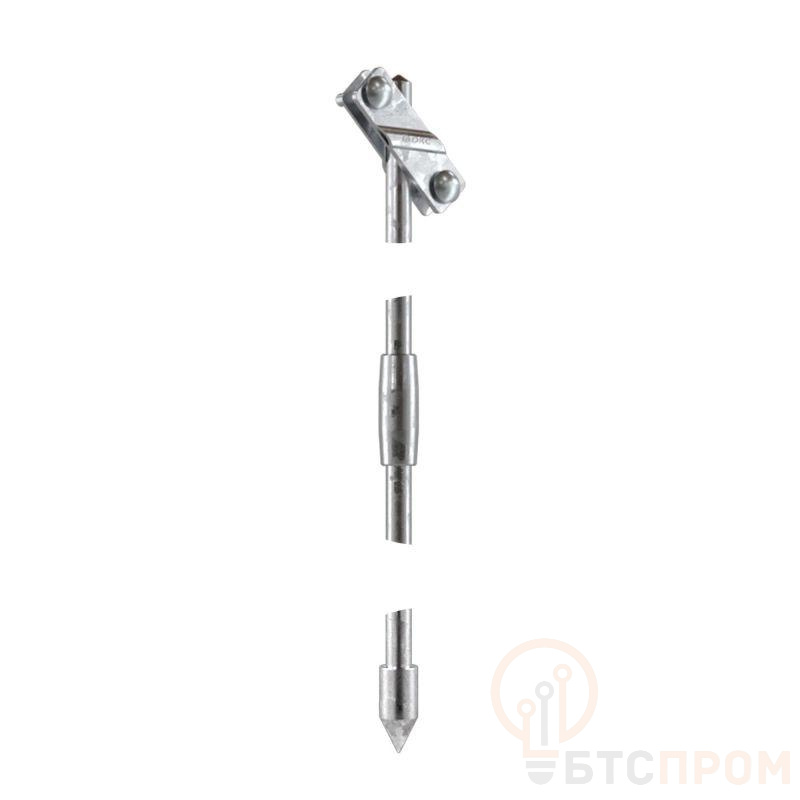 Назначение муфтового вертикального заземлителя – организация заземления токоотводов молниезащиты или электрического оборудования. Общая длина – 3000 мм. Комплект включает: вертикальный заземлитель, 1500 мм – 2 шт; соединитель проводника – 1 шт; соединительная муфта – 2 шт; наконечник – 1 шт; забивной винт – 1 шт. Диаметр стержней – 16 мм. Материал – горячеоцинкованная сталь.