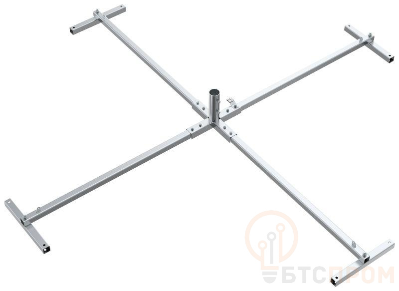 Основание предназначено для установки молниеприёмных мачт высотой до 14 метров. Крепление представляет собой четырехногую конструкцию, которая устанавливается непосредственно на бетонное основание 400x400x50 (количество бетонных оснований зависит от высоты конструкции и поставляются отдельно).