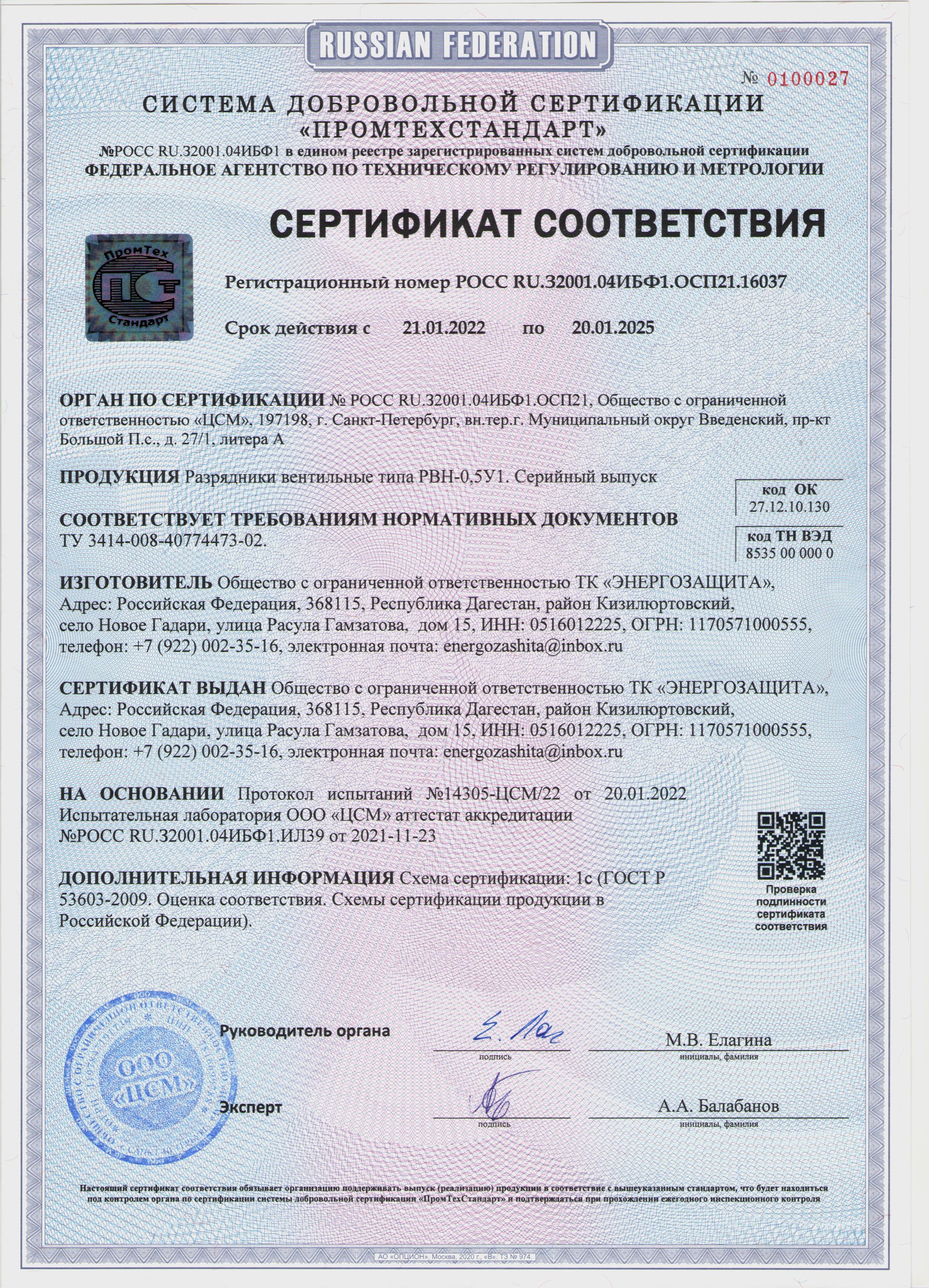 Разрядник РВН-0.5 У1 Энергозащита 00000006 фото в каталоге от BTSprom.by