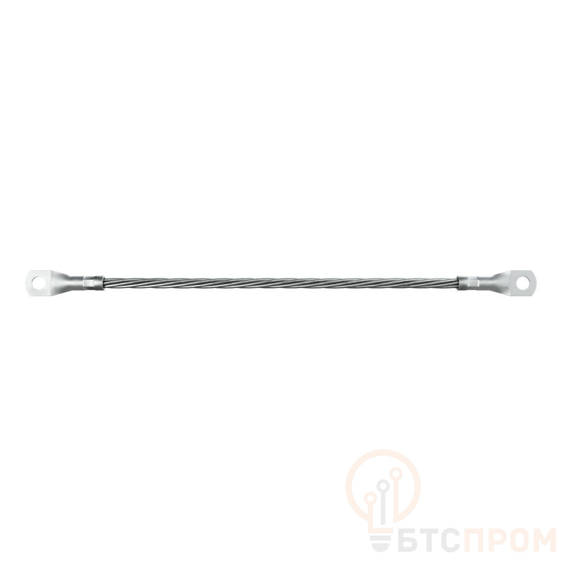 Заземляющий проводник с наконечниками под винт М10 предназначен для подключения к системе заземления металлических конструкций, корпусов машин и аппаратов, размещенных на открытом воздухе. Проводник выполнен из многожильного алюминиевого провода. Использование алюминиевого проводника под землей запрещено. Площадь сечения проводника - 50 кв.мм., длина - 250 мм.