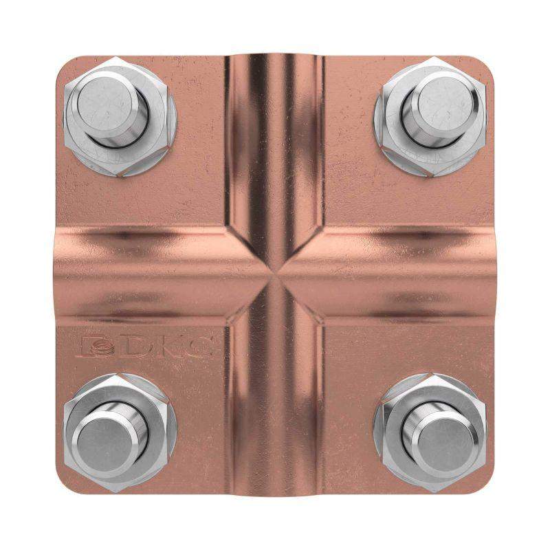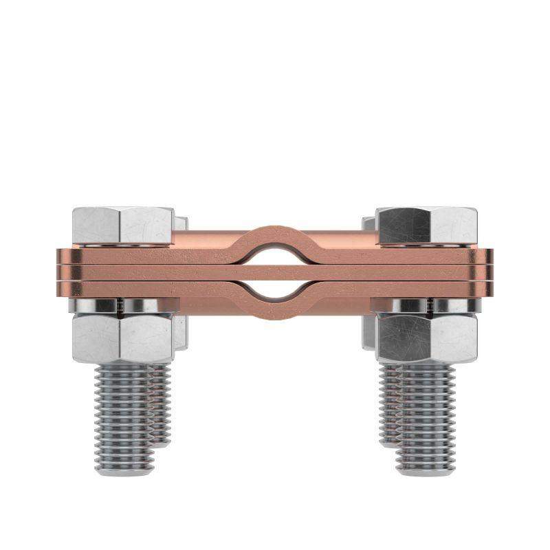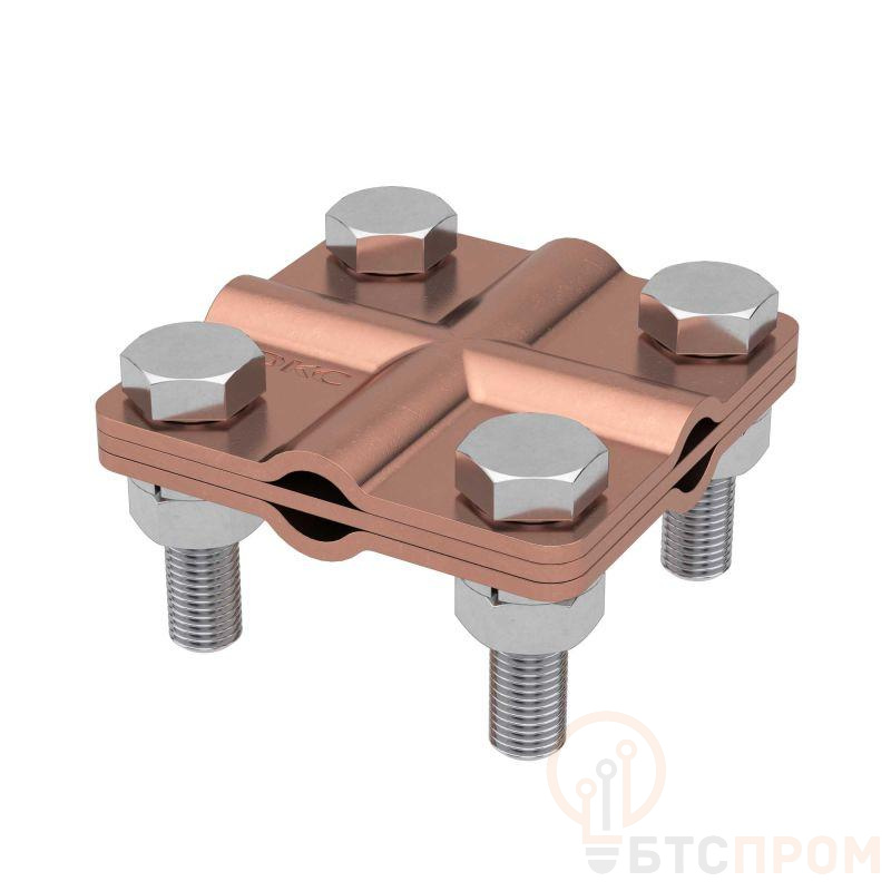 Соединитель "пруток-пруток" используется для крестообразного соединения круглых проводников диаметром 10 мм. Материал - медь.