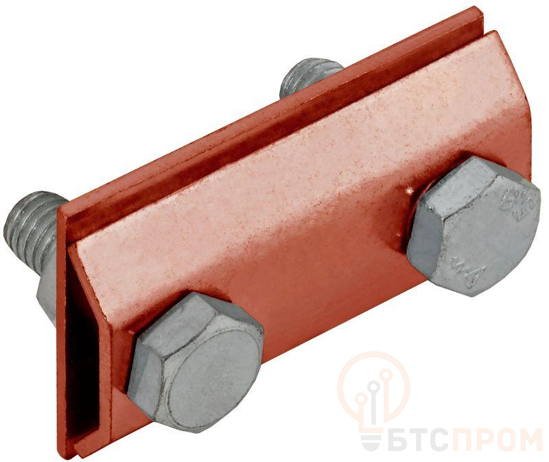 Зажим соединительный сквозной пруток-пруток предназначен для соединения круглых проводников. Способен зажимать проводники как соосно, так и параллельно друг другу. Состоит из двух пластин и зажимных болтов с гайками. Материал корпуса - медь.
