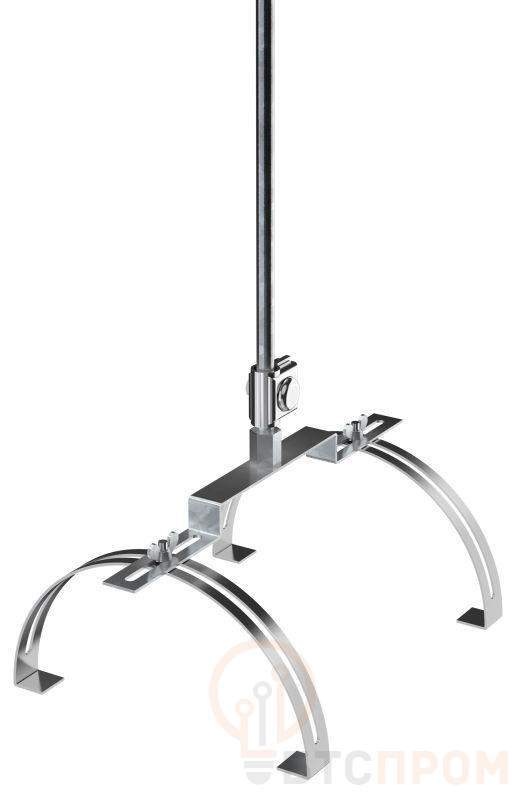 Молниеприемник товарного знака IEK с двойным креплением предназначен для установки на круглый конек кровли. В комплект входит молниеприемник в сборе, крепление и соединитель для токоотвода.