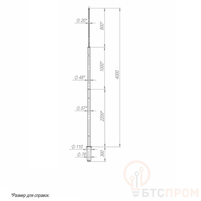 Молниеотвод 4м-К110/76 оцинкованный от производителя «Пересвет» (арт. 00-004021) — надежное решение для защиты зданий, сооружений и оборудования от прямых ударов молнии. Конструкция выполнена из высококачественной оцинкованной стали, что обеспечивает исключительную коррозионную стойкость и длительный срок службы в любых погодных условиях.