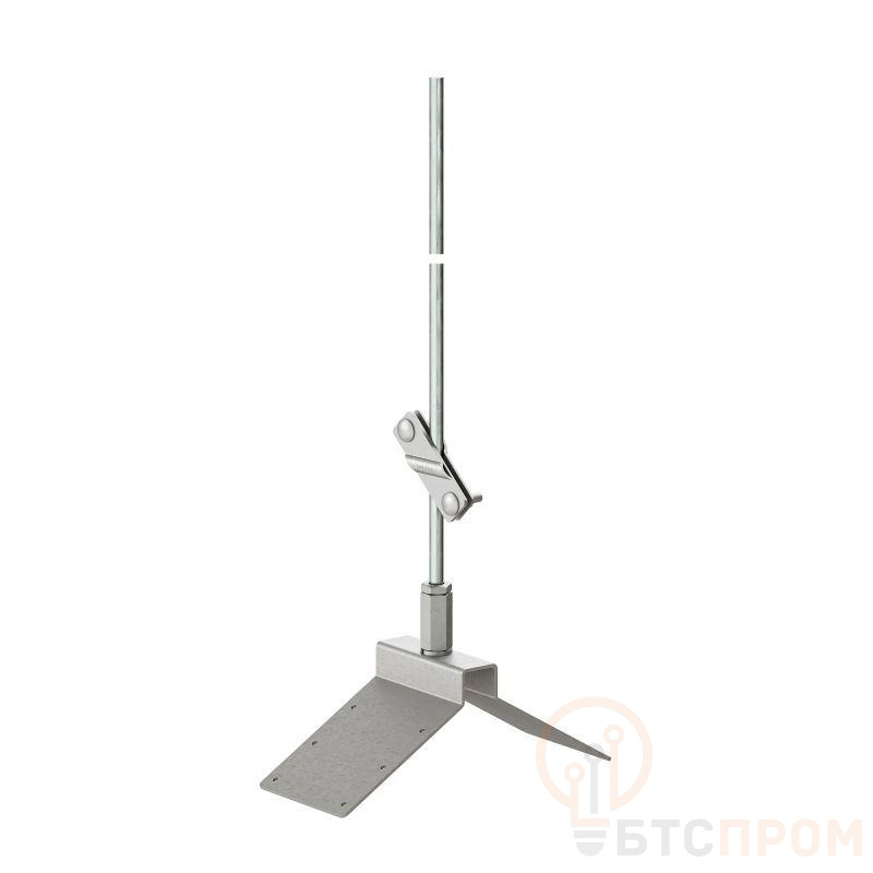 Коньковый молниеприемник с угловым зажимом устанавливается на острый конек кровли с помощью саморезов. В комплект молниеприемника входит установочный соединитель для подключения токоотвода - круглого 8-10 мм или плоского 25-50 мм проводника. Длина - 1500 мм.