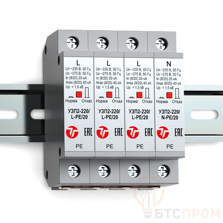 Устройства защиты 4п ограничительного типа класса испытаний II УЗП2-220К/3LN-PE/20 Тахион 20168 фото в каталоге от BTSprom.by
