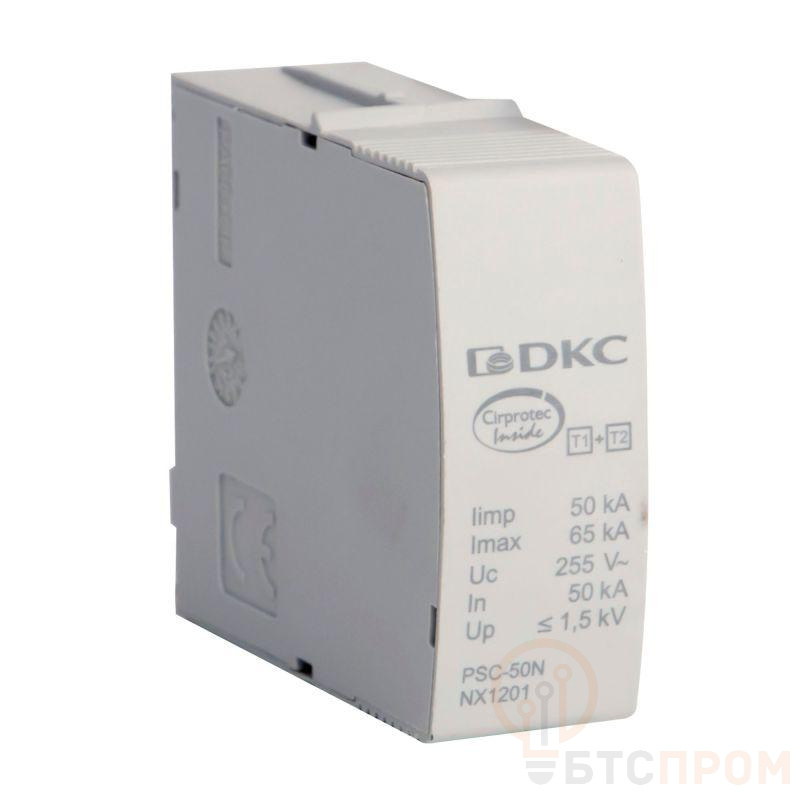 В сменном модуле для УЗИП класса I+II размещены блок контроля состояния и визуальный индикатор работоспособности. Система быстрой фиксации сменных модулей позволяет легко и быстро извлекать защитные модули из базового элемента. Исполнение - N-PE.